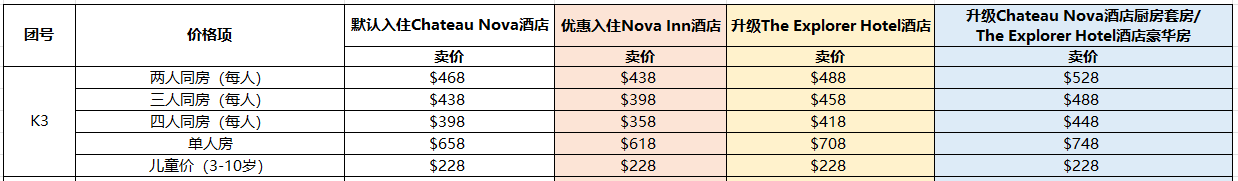 旅行團代碼: K3